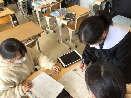 理科や英語の授業では、学習内容の理解を深めるために友だちとの学び合いの時間があります。