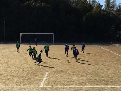 体育は、サッカーのゲームです。ボールコントロールも上達してきました。寒さに負けず元気に活動しています。