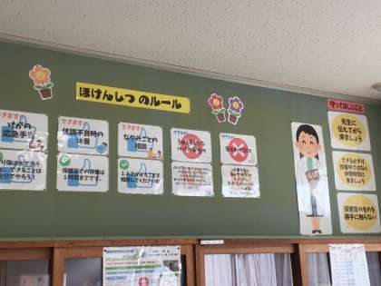 保健室は、生徒たちが気持ちよく利用できるように掲示物を工夫してくださっています。