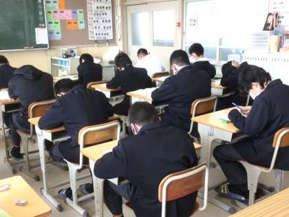 1・2年生は学習診断テストを受験中です。これまでの学習の成果を発揮しようと真剣に取り組んでいます。