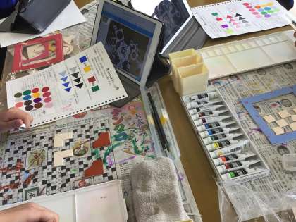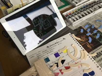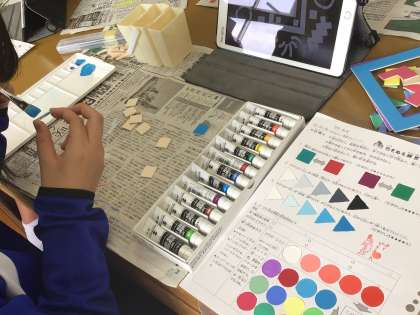 美術では、作品づくりのためにタブレットを使って確認しています。