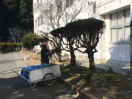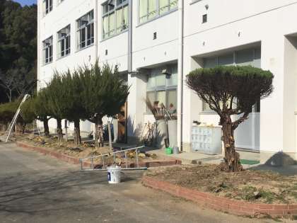 校内の樹木や花壇がどんどんきれいになっています。春にはチュウリップなどの花が咲くのを楽しみにしています。