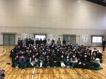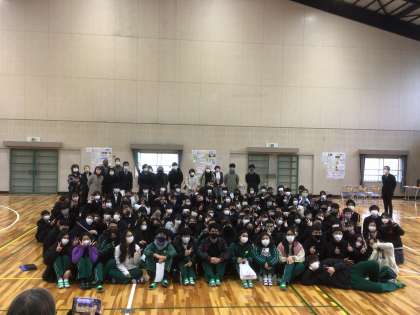 校長先生の話を聞き、最後にみんなで記念撮影をしました。