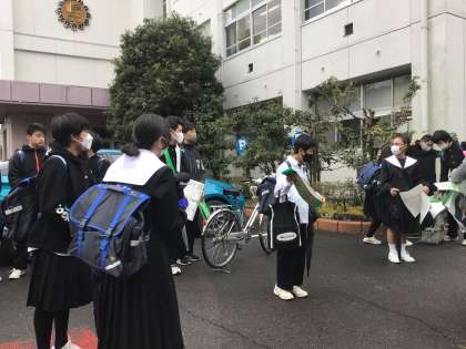 生活スタッフによるあいさつ運動です。今日はロシア語によるあいさつです。