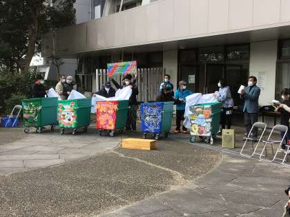 本日、保見地域会議主催の保見団地ピカピカ大作戦 ゴミ拾いウォークが行われ、保見中の生徒が参加しました。受付や開会式の司会も保見中生が行いました。開会式では1年生とアーティストが作成したダストボックスが披露され、大きな拍手がわき起こりました。