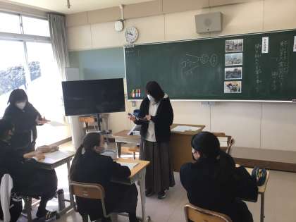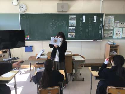 国語の授業です。タブレットやリライト教材で視覚化しています。