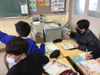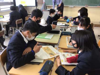 社会科では鎌倉幕府が滅亡した理由について資料をもとにグループで話し合っています。