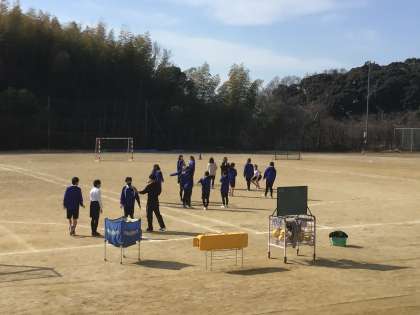 体育はハンドボールです。グループで練習します。