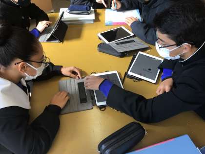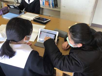 美術の授業では、コマドリアニメの完成に向けて友だちタイムを使って意見交換しています。