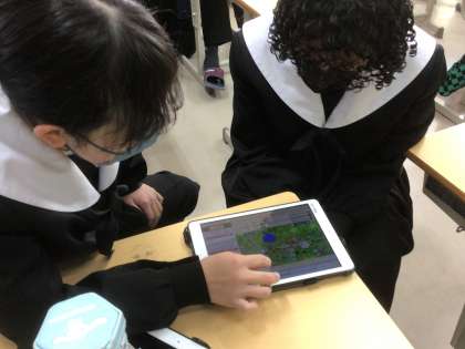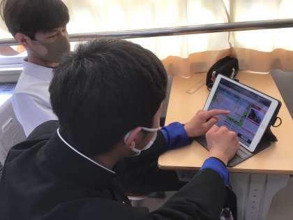社会科では地理のまとめをタブレットを活用してゲーム感覚で行っています。