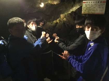3・4組は風穴、氷穴めぐりを終え、ホテルに向かっています。