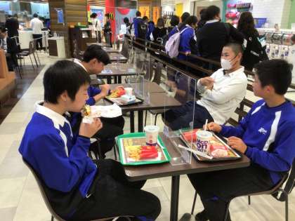 いろいろな店から食べる場所を選んでいます。やはりハンバーガー店が人気です。