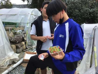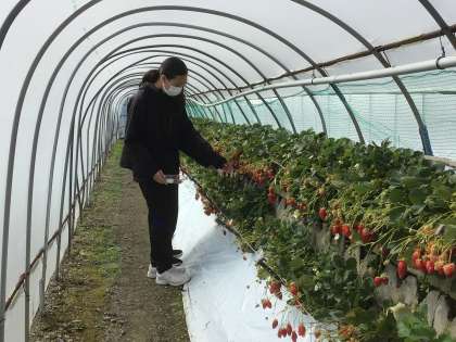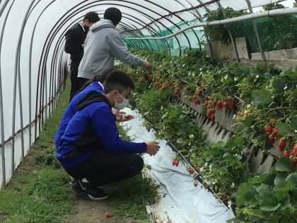 いちご狩りの様子です。100個に迫るほど食べている生徒もいます。