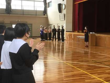 式の終わりには生徒からのサプライズで校長先生にエールを送りました。