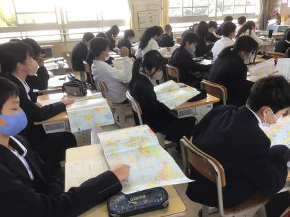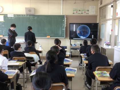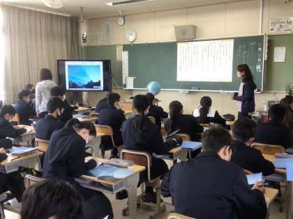 国語や社会では大型テレビなどを活用して視覚的に理解を促しています。