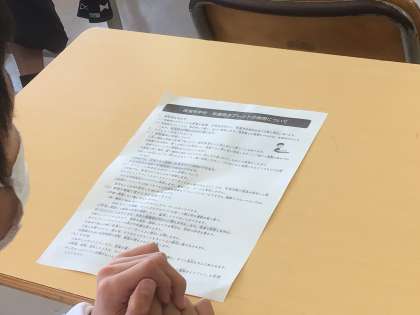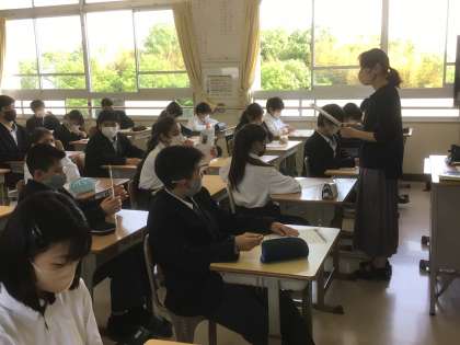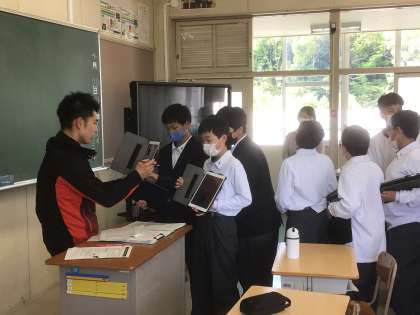 保見中学校でのタブレットの使い方について担任の先生から話を聞きました。