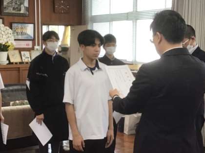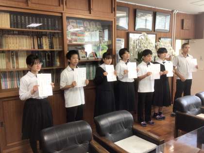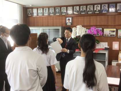 スタッフ長、3年生の級長・代議員・書記、特別支援学級の級長の認証式を行いました。