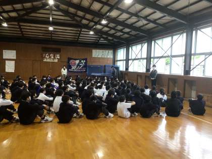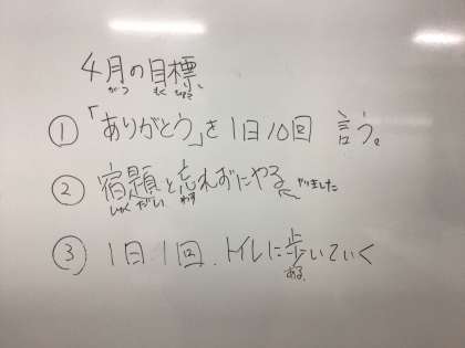 4月25日の朝の風景(1)1年生学年朝の会の様子 神妙な顔つきで話を聞きます。(2)2年生自然教室の掲示板 まだ空白ですが、ここからどうなる?(3)特別支援学級の4月の目標 ありがとうが飛び交う教室は👍イイネ。