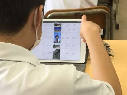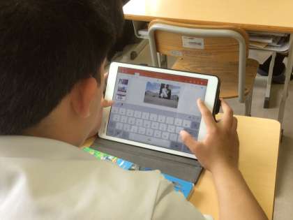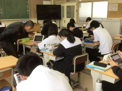 社会科では近代文化に関する問題を各自がタブレットで調べて作成しています。