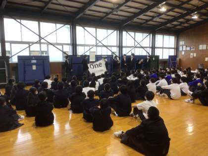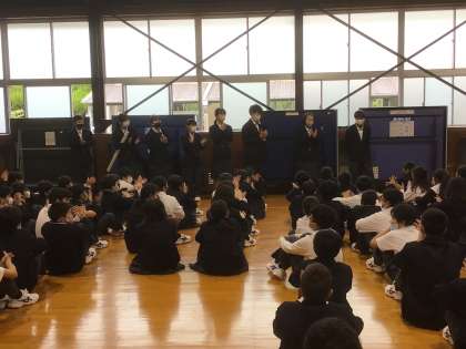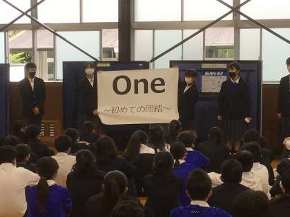 級長の自己紹介と学年スローガンの発表を行いました。それぞれに温かい拍手が送られていました。