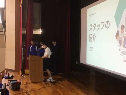 金曜日の生徒総会に向けて生徒会役員とスタッフ長がリハーサルを行っています。