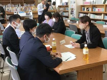 小学校の先生方に中学校での生活の様子を伝えています。