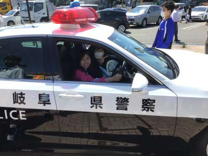 ひるがの高原の一コマ 交通安全キャンペーンで警察の方がいました。パトカーに乗せてもらいました。