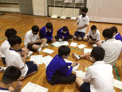 7時30分からクラスごとにボディーパーカッションの練習です。まずは2組