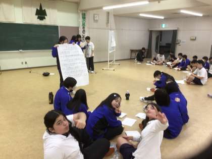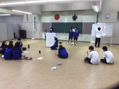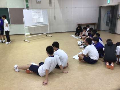 ボディーパーカッションの練習 3組 ここはリーダー中心に全員で合わせた練習をしていました。