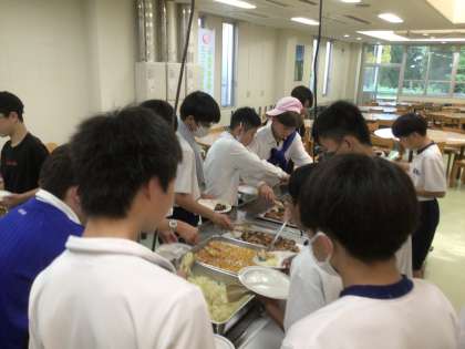 みんな大好きフライドポテトにタコ焼き。疲れたのか昨日よりは静かに食べていました。