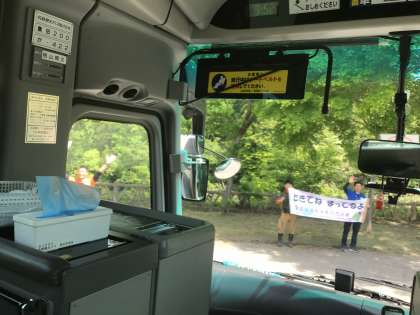 40分遅れで出発しました。所員さんからお見送りを受けました。