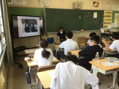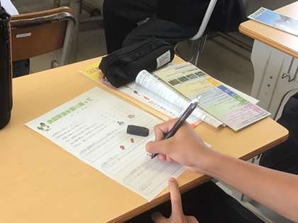 自然教室の写真を見て活動を思い出しつつ振り返りをしています。