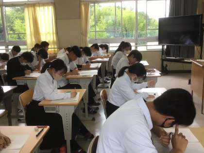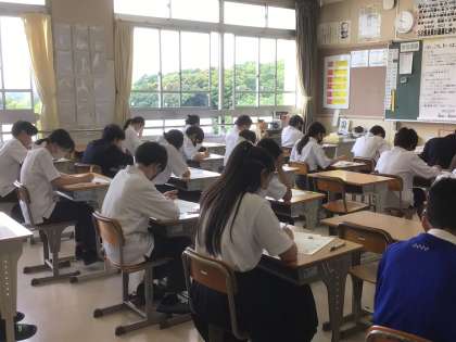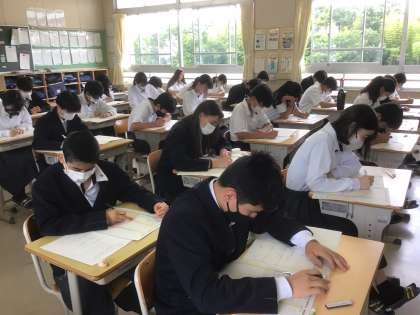 定期テストの様子です。全員が真剣に問題を解いています。