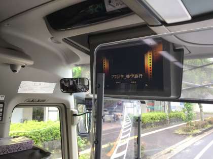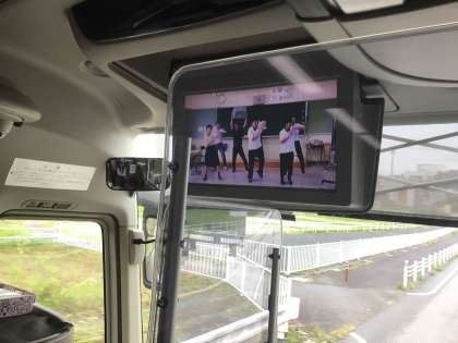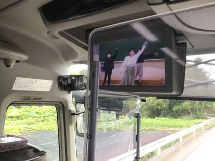 バスの中で事前に作った出発式DVDを見ました。ダンスあり、お笑いありの楽しい出発式でした。