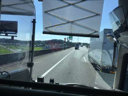 渋滞で遅れています。予定を変えて、遠州森松SAで休憩 まもなく出発します。学校到着予定がこの時点で17時10分から17時20分くらいです。