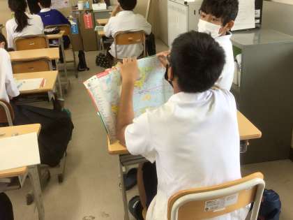社会科では時差の求め方について学んでいます。