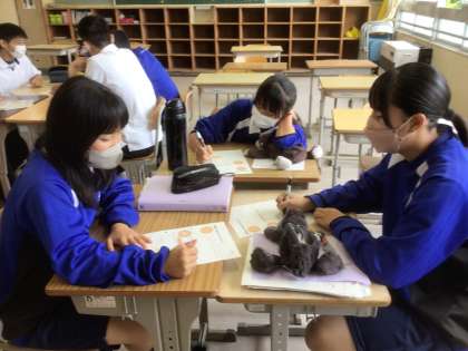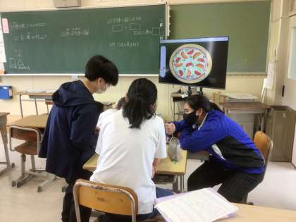 数学では平方根の学習で学んだことをグループで確認しあっています。