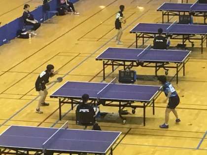 卓球部は個人戦準々決勝を戦っています。