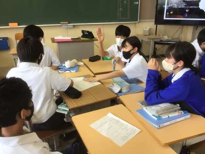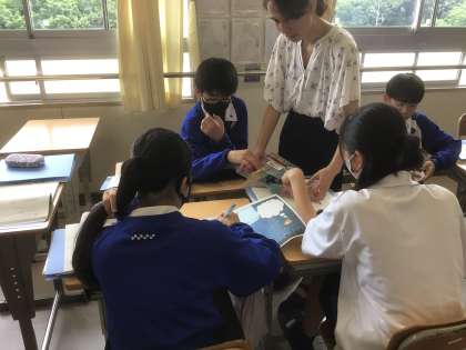 国語では詩の読み取りで学んだことを表現に活かせるようグループで表現方法を考えています。