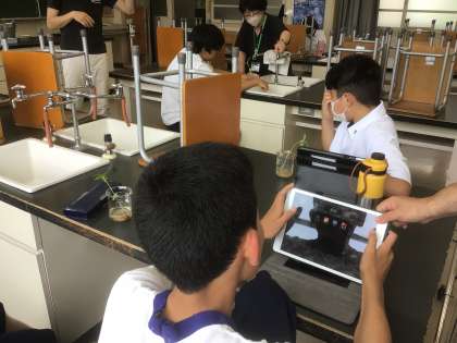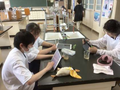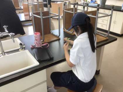 理科ではヒマワリの葉を観察しています。