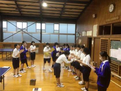 卓球部では3年生とのお別れ試合とセレモニー行いました。