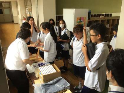 早朝より昇降口にて1年生のデザインセットの販売が行われました。