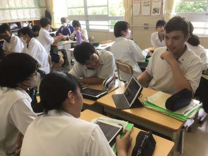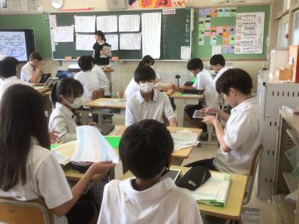 国語ではお気に入りの短歌のいいところを伝え合っています。