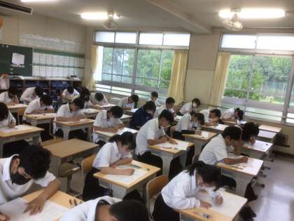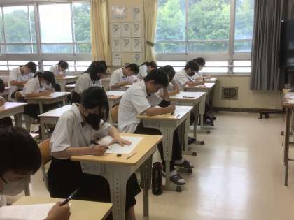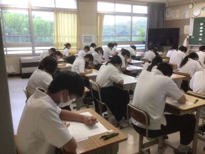 今年度最初の学習診断テストです。真剣に問題を解いています。