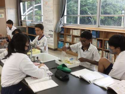 理科では消化のはたらきについて実験で検証しています。
