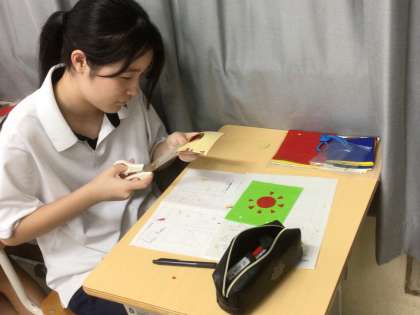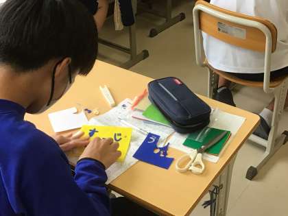 家庭科では布絵本の完成に向けて工夫を凝らしています。