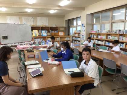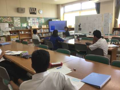 視聴覚機器を使用して、詩の内容理解に努めています。