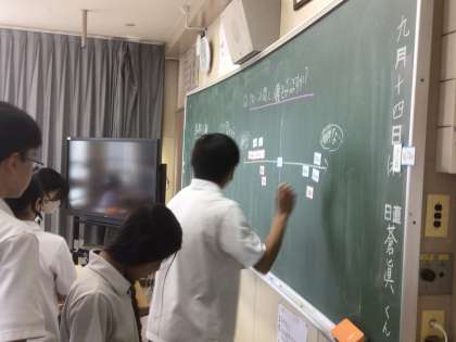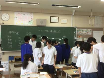 社会科では基本的人権について学んでいます。クローン人間に人権を与えるかという話し合いを通して考えを深めています。