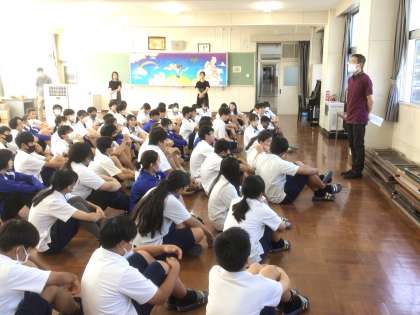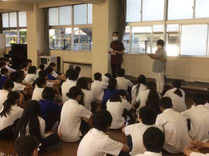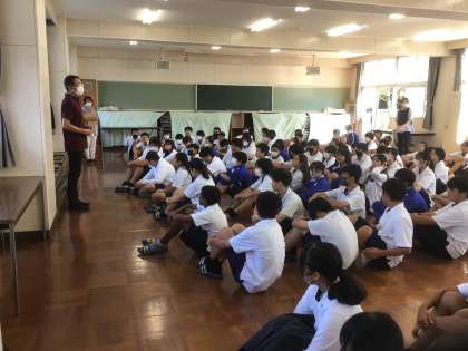 水曜日からの職場体験学習に向けての学年集会を行っています。