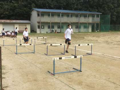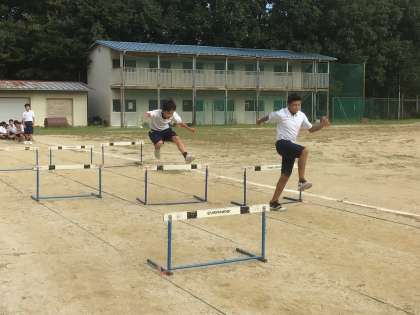 体育ではバトンパスの練習とハードル走の計測をしています。